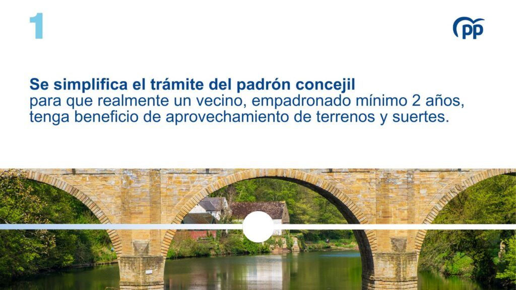Se simplifica el trámite del padrón concejil para que realmente un vecino, empadronado mínimo dos años, tenga beneficio de aprovechamiento de terrenos y suertes. Se abastece del padrón municipal que está al día y existe en todos los municipios.