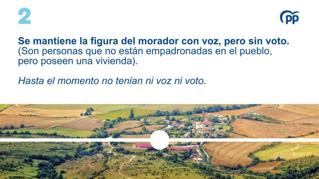 Se mantiene la figura del morador (aquellas personas que no están empadronadas en el pueblo, pero poseen una vivienda). Se propone mantener la figura con voz, pero sin voto porque hasta el momento no tenían ni voz ni voto.
