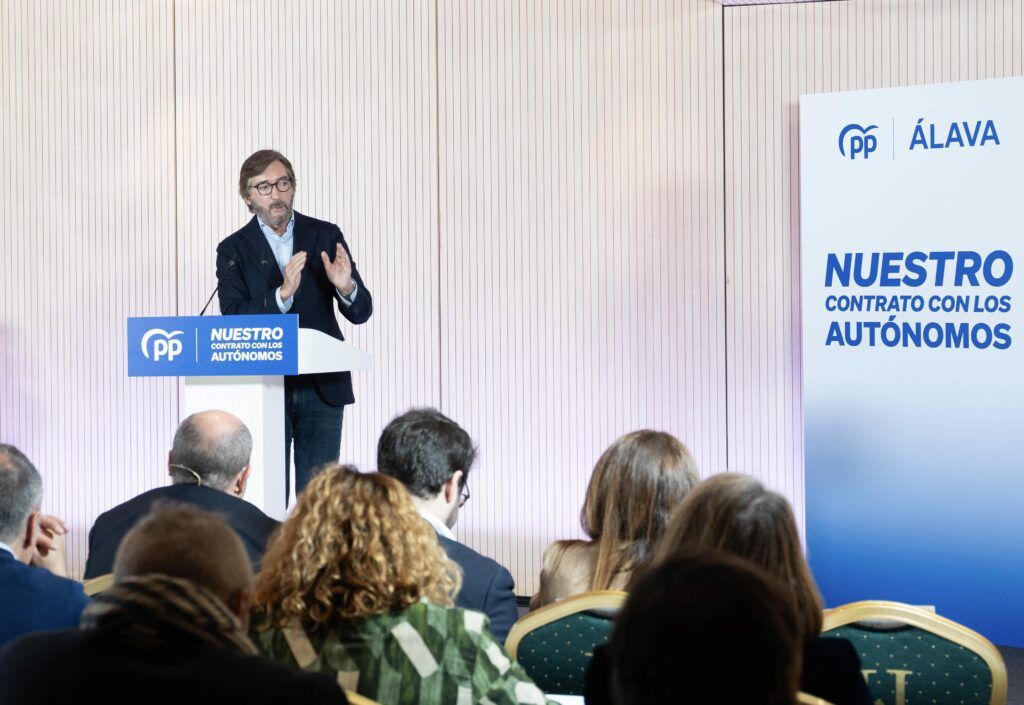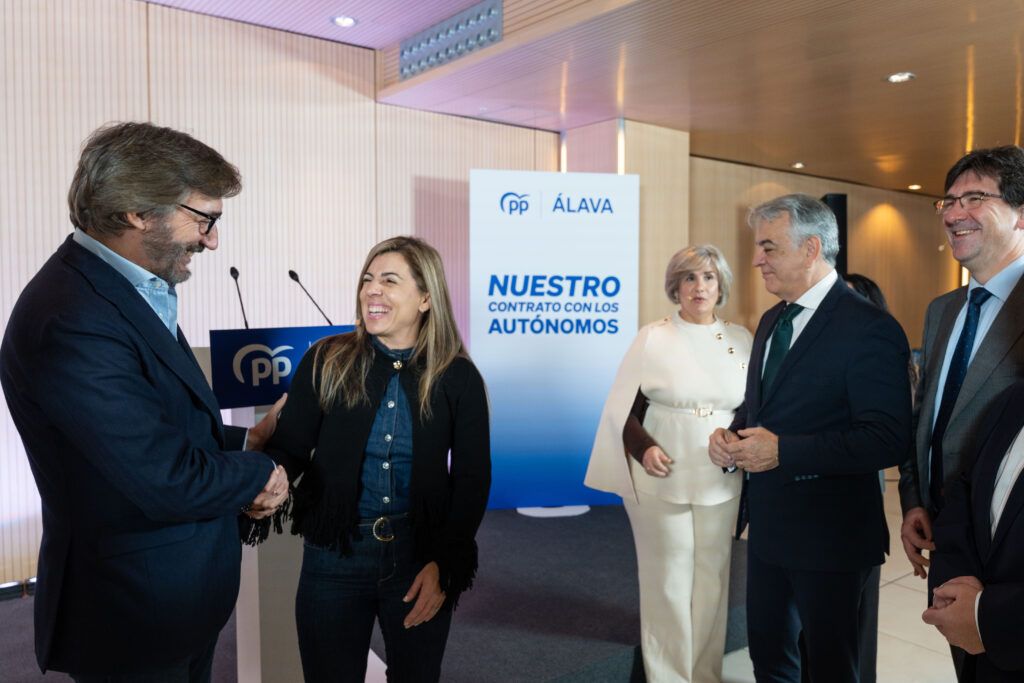 Javier De Andrés, presidente del PP vasco; Iñaki Oyarzabal, presidente del PP de Álava; Ana Salazar, secretaria general del PP de Álava, e Iñaki García Calvo, portavoz de PP Vitoria, y autónomos.